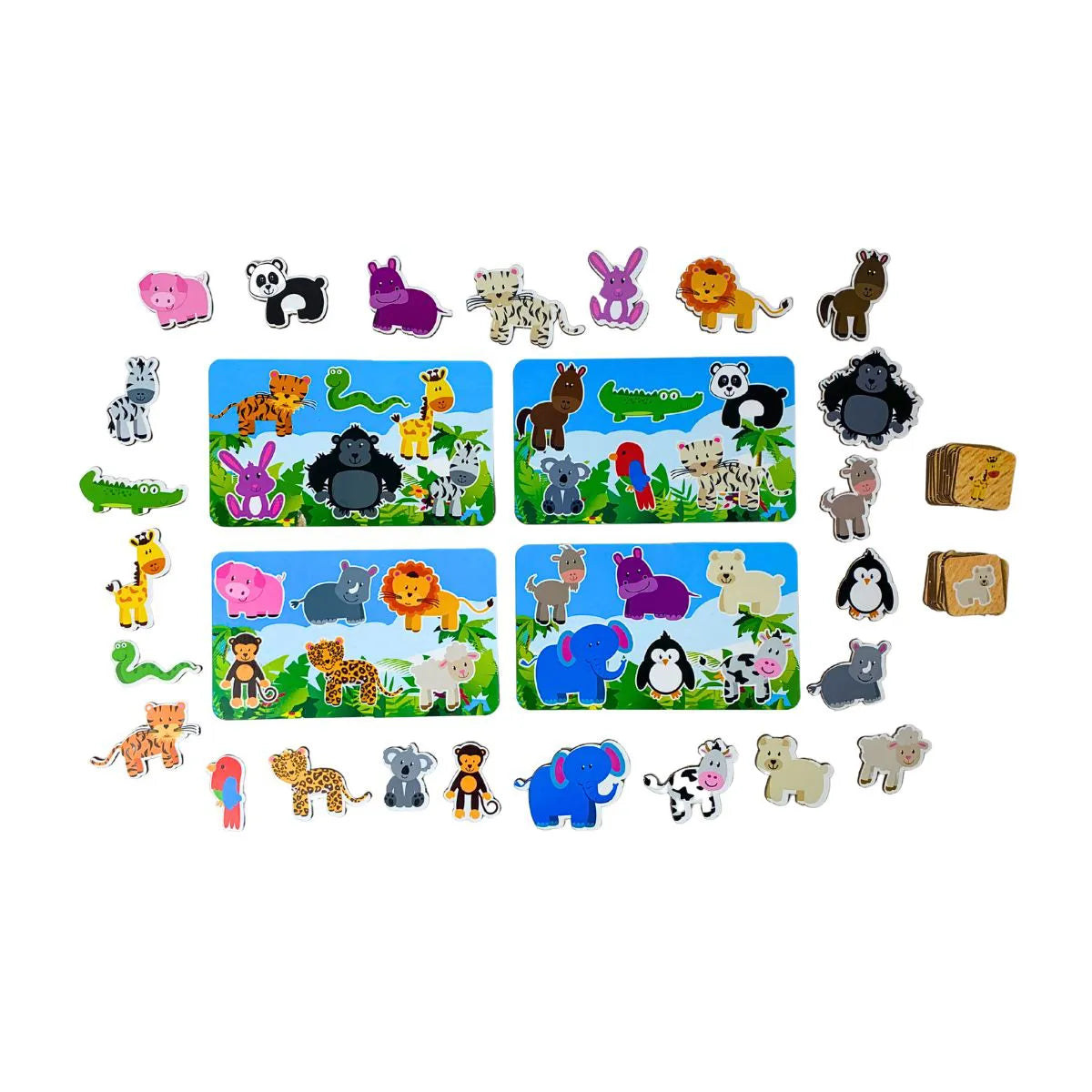 Tradicional jogo de bingo infantil com desenhos de animais. A criança associará a ficha sorteada com a sua cartela. Estimula a habilidade de concentração, desenvolve o raciocínio lógico, exercita a memória, percepção visual e espacial.
