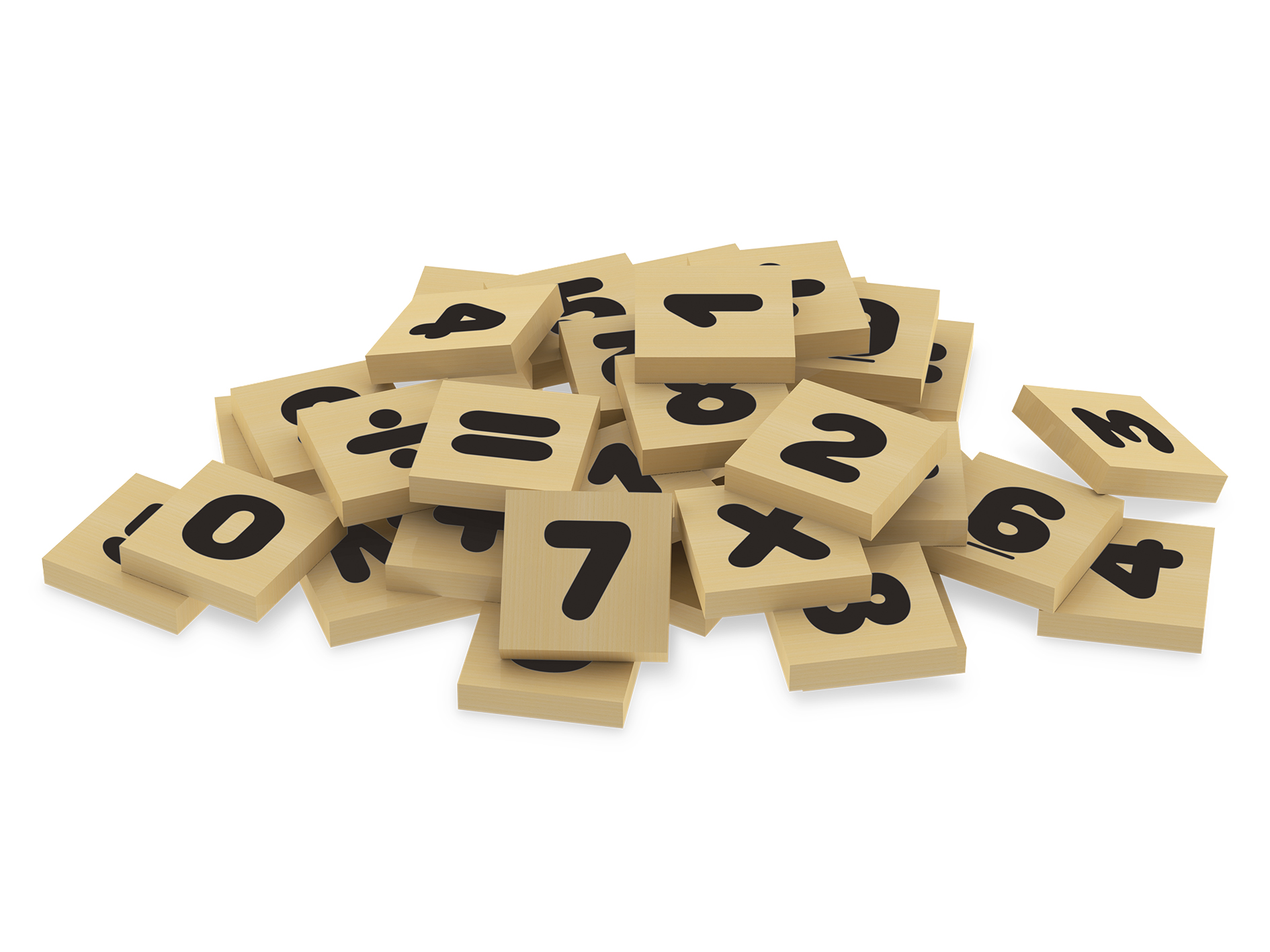 Jogo de Números da Junges com 40 peças em madeira de reflorestamento (MDF) em 6mm de espessura, com números e sinais matemáticos (tabuada completa), impressas em serigrafia direto na peça. Ideal para a criança elaborar seus primeiros cálculos!